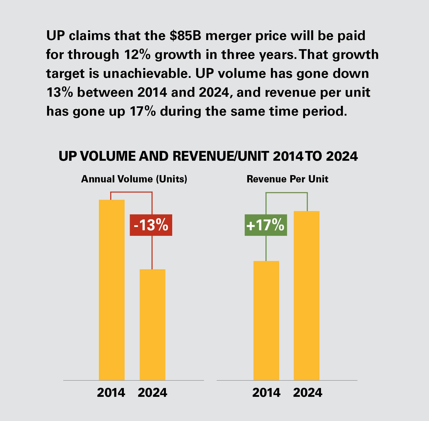 For example, after the UP-SP merger in 1996, the initial congestion in Houston created a domino effect, with rail traffic backing up for thousands of miles across the country. By the fall of 1997, the system was completely paralyzed: